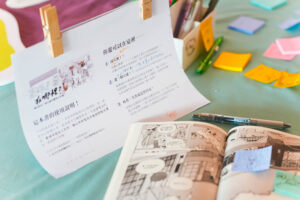 〈飲飲喝代誌—宗澔在哪裡?〉透過複合式書刊、以尋找組員宗澔為起點,帶領讀者了解飲文化。展覽現場邀請參與者自由寫下各種想法與塗鴉,並設有找尋物品的互動環節供參與者實際體驗。